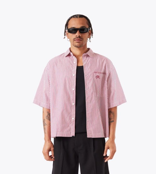 Made from 100% cotton, the ZANEROBE Box Crop Shirt in Red Stripe is designed with premium yarn-dyed poplin for exceptional comfort and lasting quality. Its wide, cropped silhouette is complemented by signature details like the blanket stitch finish and emblem logo, blending style and versatility into one refined piece.