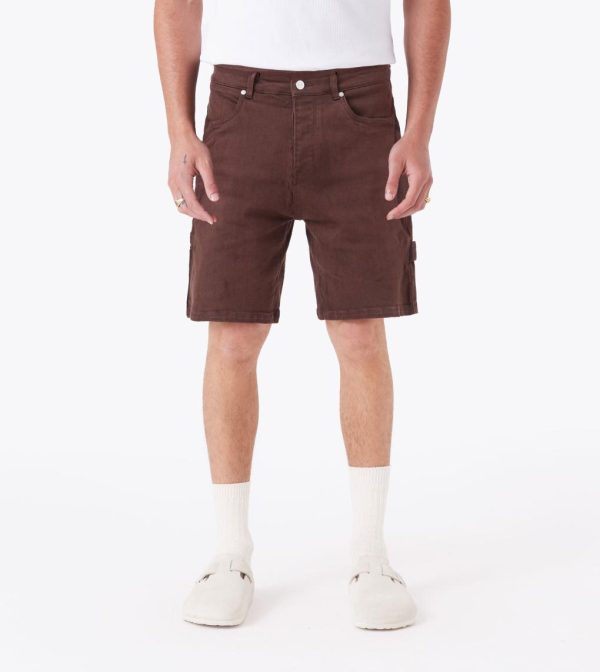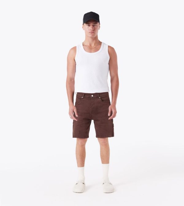 Upgrade your wardrobe with the essential Zanerobe Carpenter Denim Short in Dk Choc. Crafted from 98% premium cotton and 2% elastane, these shorts offer unmatched comfort. Featuring a carpenter back pocket and back loop styling, they perfectly blend style with function. For a sleek and refined ensemble, team them up with tucked in rib tank.