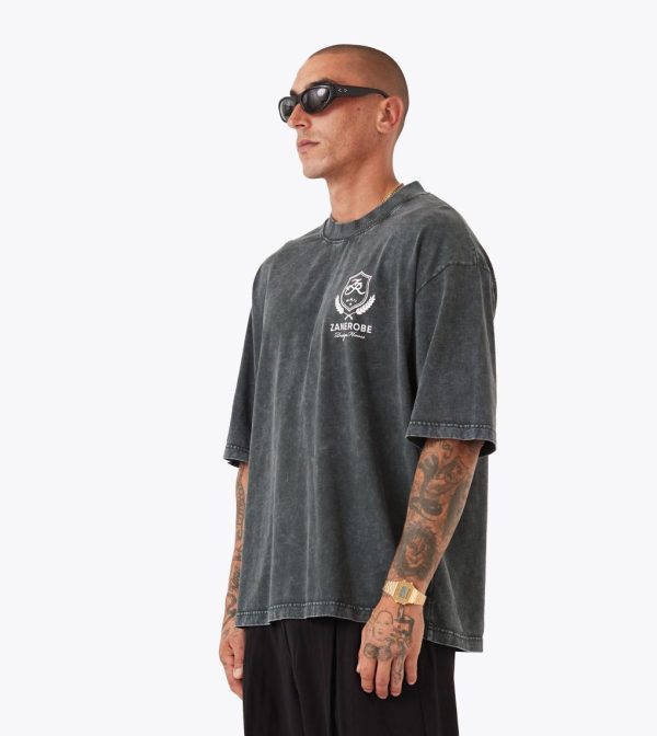 The ZANEROBE Crest Flow Tee in GD Forest delivers a confident balance of texture and form. Cut from heavyweight 100% cotton jersey, it features an oversized silhouette with drop shoulders and a standard length for everyday versatility. The thick ribbed neckband adds structure, while the garment-dyed and enzyme-washed finish creates a rich, vintage tone with a soft, worn-in feel. Front and back plastisol prints, along with a subtle back yoke detail, complete the piece with a graphic yet refined edge.