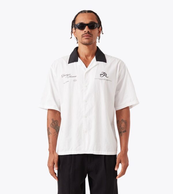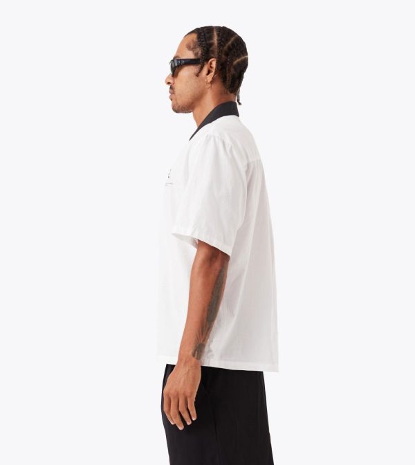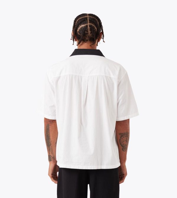 A bold statement in refined contemporary style, the ZANEROBE Design House SS Shirt in White/Black is crafted from crispy 100% cotton poplin for a premium look and feel. Designed with a slightly cropped, boxy fit, it delivers effortless structure and modern proportions. Finished with a back yoke for added shape and durability, this is the perfect lightweight layer to elevate your rotation.