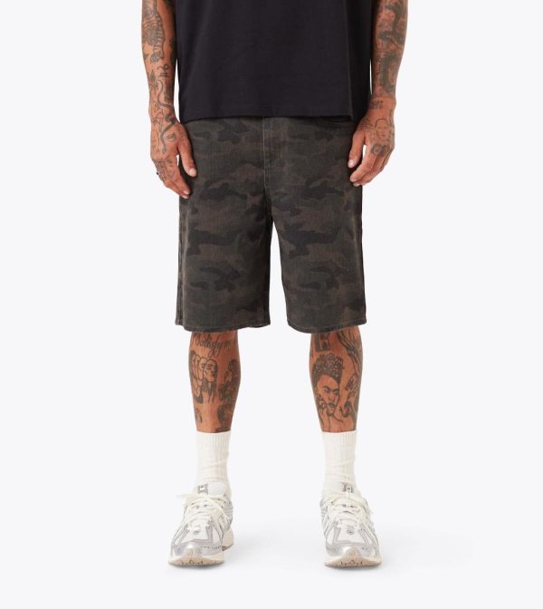 The ZANEROBE Legacy Denim Short in Dark Camo brings a bold twist to classic denim styling. Crafted from 100% cotton twill, these shorts feature an all-over dark camo print that adds a unique edge. With a relaxed fit, classic 5-pocket construction, and a regular rise with button fly, they offer both comfort and functionality. The ‘X’ stitch signature on the back pocket reinforces ZANEROBE’s signature style, making these shorts a standout addition to your wardrobe.,