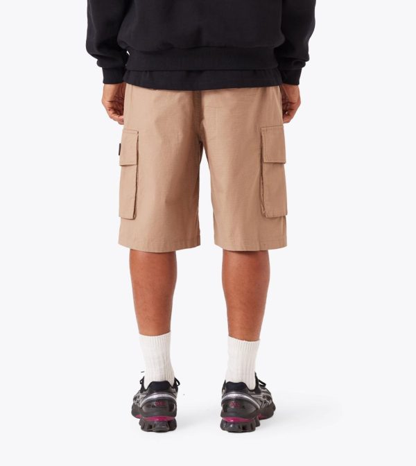Engineered from a durable 98% cotton, 2% elastane rip-stop, the ZANEROBE Parachute Short in Dk Tan blends utility with everyday wearability. A tailored elastic waistband with adjustable drawcords ensures a secure fit, while oversized patch pockets with box pleats and rubberized accents add a refined, functional edge.,