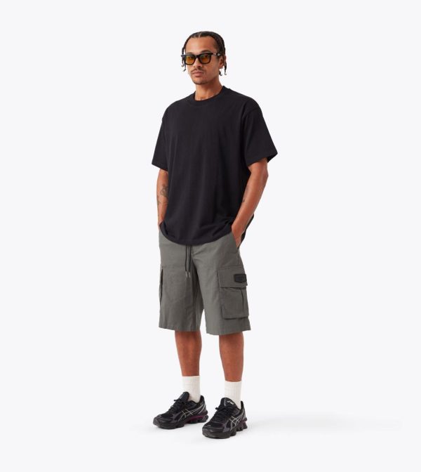 Constructed from a premium 98% cotton, 2% elastane rip-stop blend, the ZANEROBE Parachute Short in Olive delivers the perfect balance of durability and comfort. Designed for a seamless fit, it features an elastic waistband with external drawcords, while oversized patch pockets with box pleats and rubber detailing add both function and a modern edge.